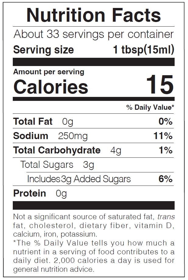 Water, Vinegar(Apple Vinegar, Rice Vinegar), Sugar, Salt, Less Than 2% of Boiled and Dried Japanese Anchovy, Dried Kelp. |