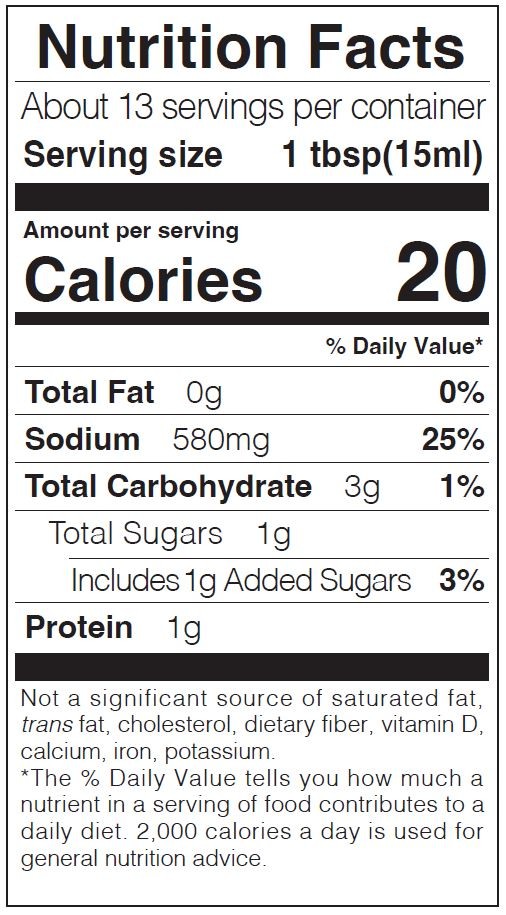 Water, Soy Sauce(Water, Soybeans, Wheat, Salt), Mirin(Water, Rice, Glucose, Alcohol), Salt, High Fructose Corn Syrup, Starch Syrup(Corn, Potato, Sweet Potato), Sugar, Less Than 2% of Monosodium Glutamate, Dried Spotted Chub Mackerel Stock, Alcohol, Dried Skipjack Tuna Stock, Glycine, Hydrolyzed Soy Protein, Disodium Inosinate, Disodium Guanylate, Disodium Succinate, Trisodium Citrate, Dried Kelp Stock. |
