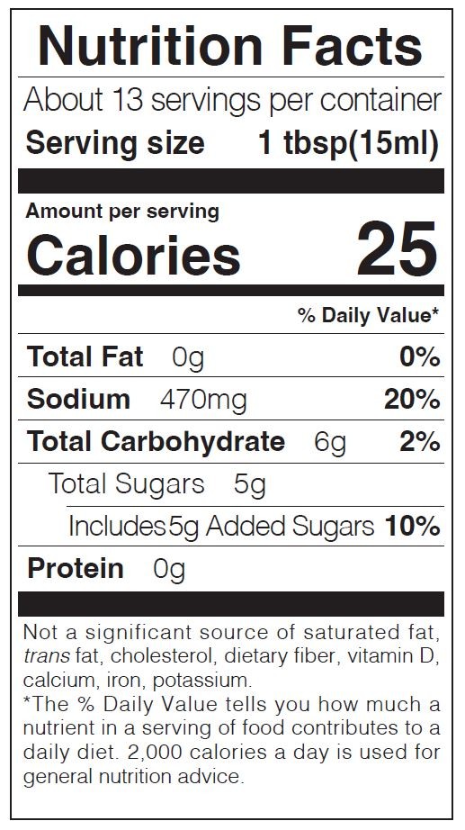 Apple Vinegar, High Fructose Corn Syrup(Corn, Cassava, Potato, Sweet Potato), Sugar, Tomato, Soy Sauce(Soybean, Wheat, Salt, Alcohol), Salt, Water, Onion, Less Than 2% of Carrot, Starch(Corn), Dried Skipjack Tuna Extract, Monosodium Glutamate, Spices, Dried Skipjack Tuna Powder, Dried Japanese Anchovy Powder, Garlic, Guar Gum, Ginger, Disodium 5'-Inosinate, Disodium 5'-Guanylate, Xanthan Gum. |
